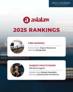 Shan Chambers has once again been recognised in Asialaw 2025 for Dispute Resolution. Our Partner, SM Shanmugam, continues to be ranked as a Distinguished Practitioner.